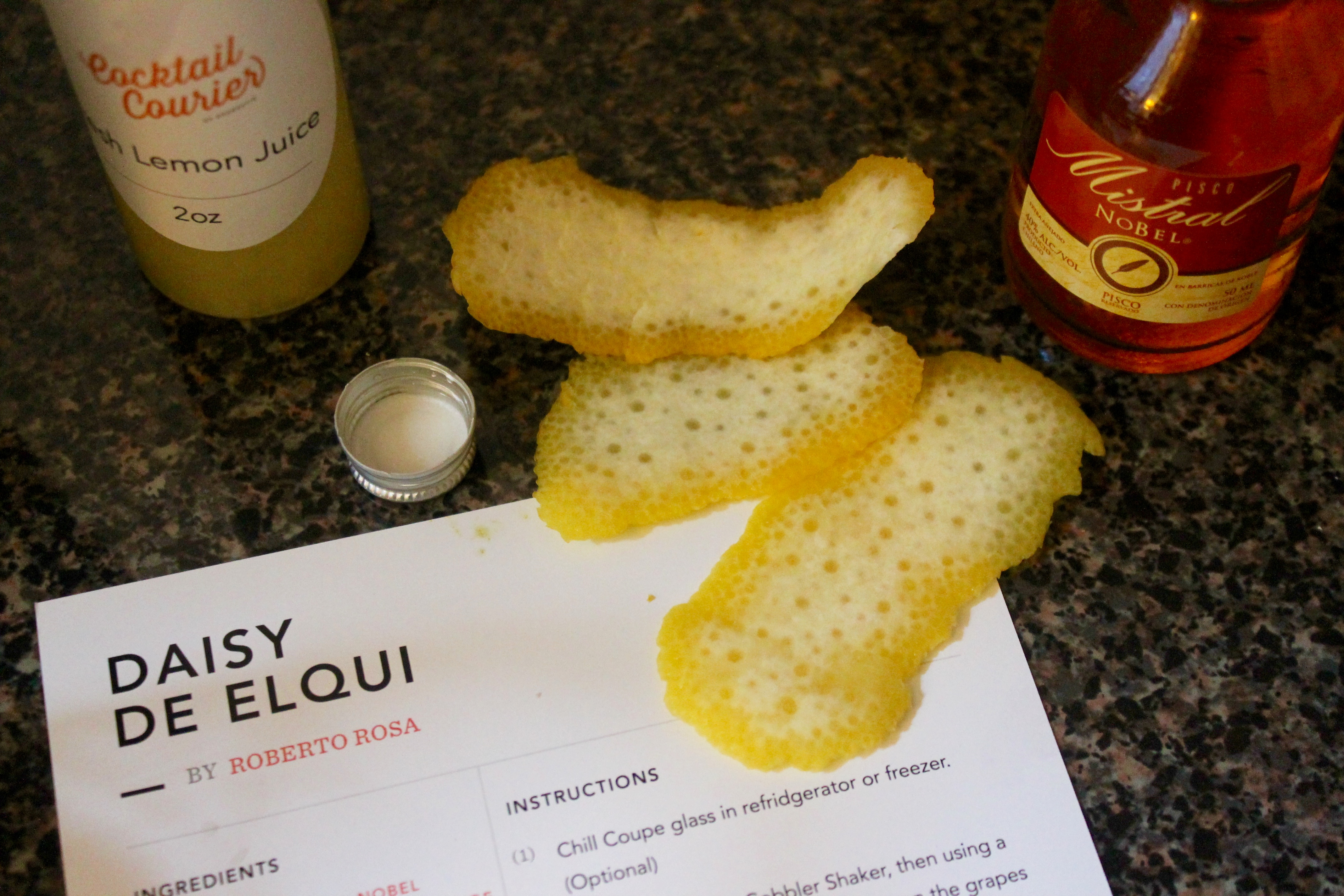 A few weeks ago, the Instagram fiend in me came across a contest on Cocktail Courier’s photo feed: Like the photo they just posted, tag a friend, and be entered to win two boxes of Daisy de Elqui, a pisco-based drink by mixologist Roberto Rosa of The Plaza Hotel. What is Cocktail Courier, exactly? Think Blue Apron, but for drinks. Top bartenders have crafted amazing cocktail recipes. You, the future home bartender and imbiber, scan through their website for drink options choose which one(s) you want to make. Cocktail Courier will deliver all of the pre-portioned ingredients to your door. How wonderful! Well, a few days after I liked that photo, I got an Instagram notification alerting me that I had won, as well as the friend I had tagged. (Hey, Adam!) NICE! We didn’t order our boxes right away, but after an exceedingly long work month, topped off by an excruciatingly painful work week, I decided, “Yeeeah. We’re ordering both boxes to be delivered for Friday.” Cheers to that decision!