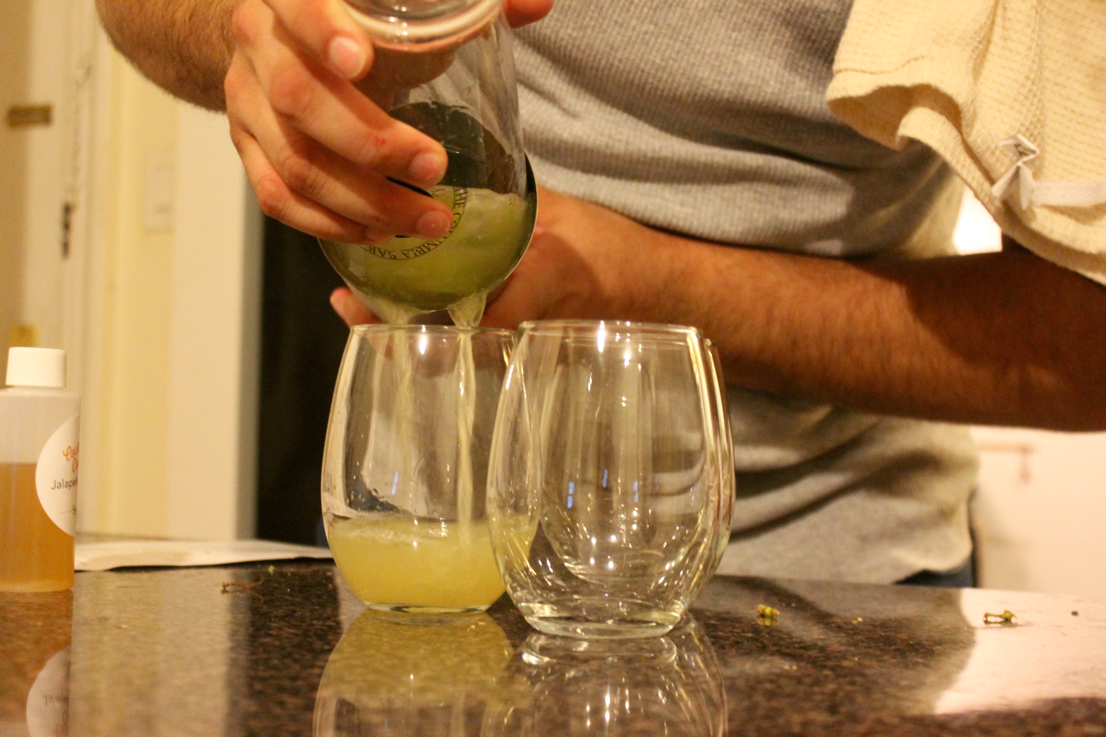 On said Friday night, Adam, his brother James, my roommate Vedika, and my college friend Lauren gathered in my cozy living room, surrounded by charcuterie, brie, liquor, and the ethereal sounds of Erykah Badu Radio on iTunes. We cracked open the boxes to find a very neat and tidy set-up. All portions of liquor were sealed in separate padded cardboard sections. The jalapeño-honey mix and fresh-squeezed lemon juice came in a sealed bag with a cold pack to keep them at a perfect temperature. Even the grapes that came for the cocktails were green and plump. One has the option to buy mixing tools and glasses from the web site. Luckily for me, Vedika bartends on the side and provided me with all of my tools. (Roommate perks.)