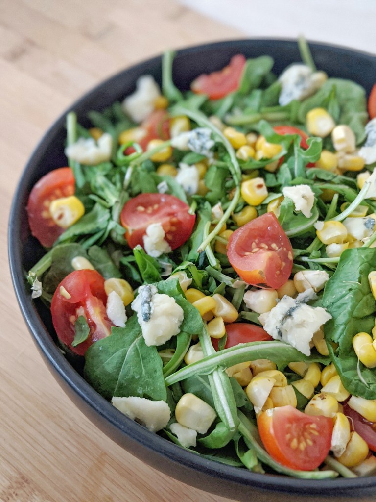 Summer Salad with Roasted Corn, Smoked Bleu Cheese, & Pear Vinaigrette