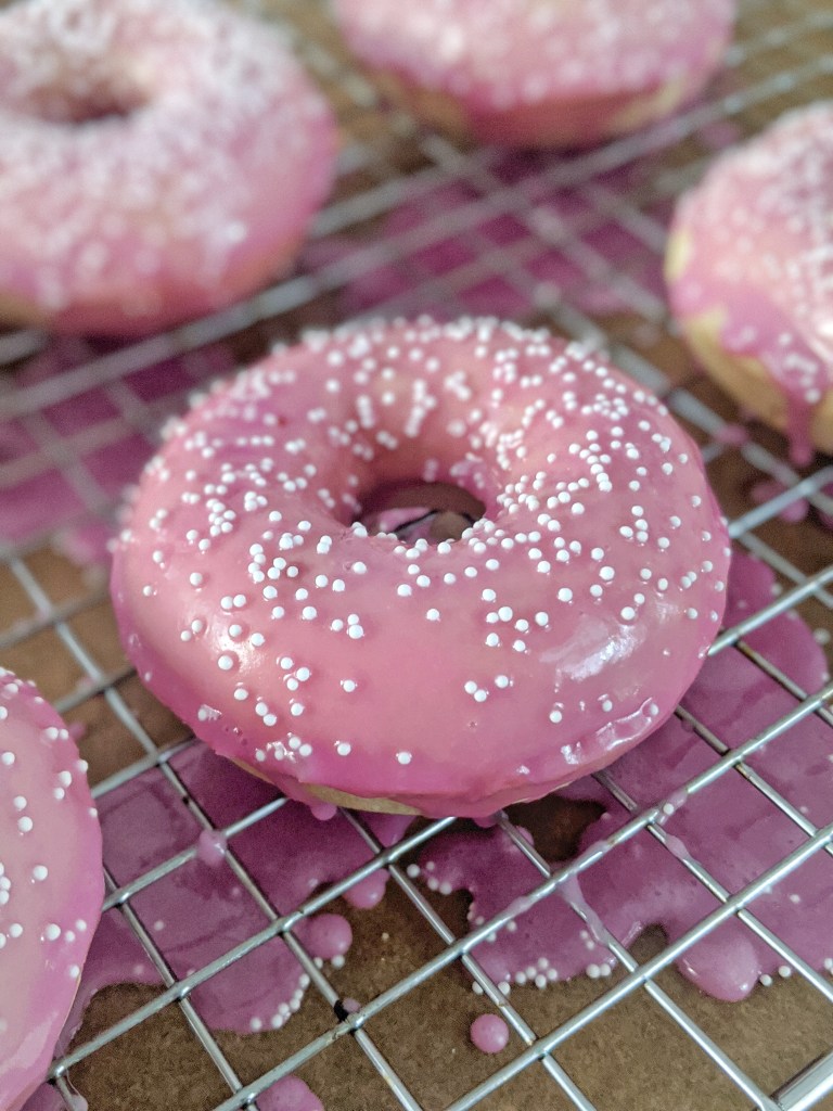 (Donut recipe adapted from “Vanilla Glazed Baked Donuts” by As Easy As Apple Pie; Makes 6 regular-sized baked donuts)