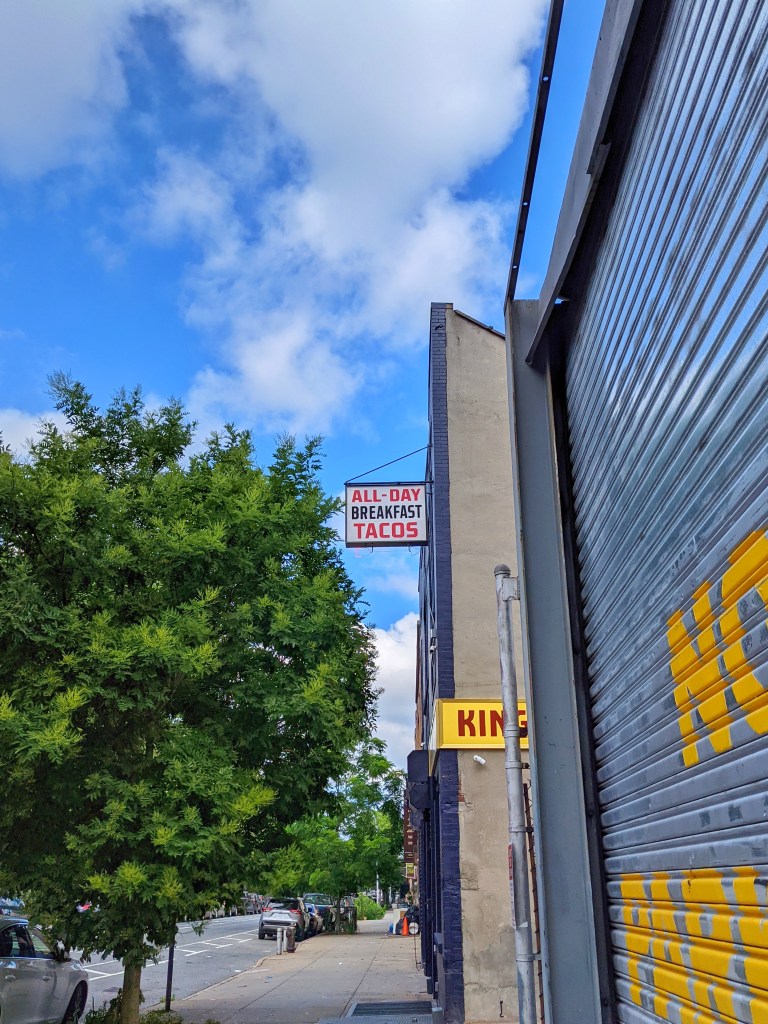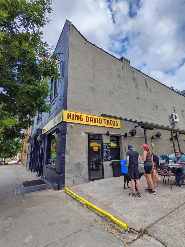 When I received an invite to visit the new King David Tacos brick & mortar location at 611 Bergen Street in the Prospect Heights neighborhood of Brooklyn, a spark was lit. There was some nostalgia as well as some curiosity to try some tacos that had previously never passed my lips. As previously mentioned, In this current-pandemic world – no, no, the pandemic is NOT over, folks! – I take great care to protect my lil’ ol’ immunocompromised self. Two of their selling points for me that prompted my interest to visit were that they encourage take-out – they even have a cute little take-out window! – and the outdoor dining situation is large enough and comfortable at 10 a.m. on a Sunday morning to give me some literal breathing room. So off I went; the 3 Train from 96th to Bergen treated me particularly well despite the usual MTA weekend b.s., and I made it in record time!
