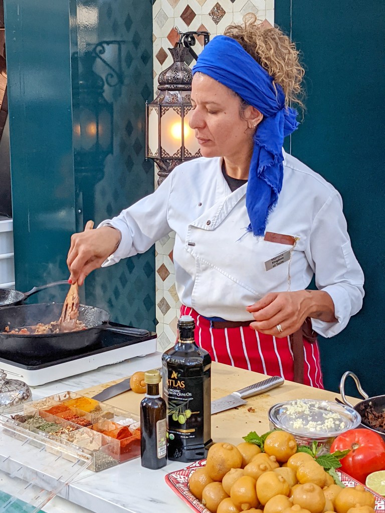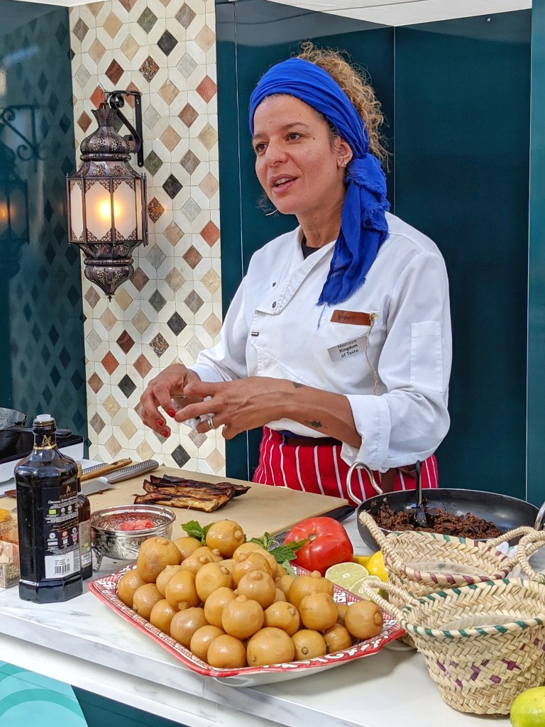All that was showcased in these pop-up sections came together beautifully thanks to a cooking demonstration from respected Chef Yasmina Ksikes, known for her LA-based Lalla Mina; her and her team created food samples that were as beautiful as they were delicious, giving us a literal taste of the many oils, vegetables, fruits, seafoods, and spices regularly incorporated in Morocco cuisine. She gave a thorough demonstration of how she creates Zaalouk, a Moroccan eggplant and tomato dish. She made mention of something anyone that cooks can relate to: Even though Zaalouk is a common dish, she has her own techniques and spice additions that make it uniquely hers; I think most chefs, recipe developers, and and even folks own kitchens can claim the same for some of their favorite recipes. Like dishes I make often that I’ve put my own spin into, creating it isn’t from measurements or directions after a while, but rather from intuition. Yasmina knew her technique for “triple burning” the Zaalouk – a caramelization method used to add depth of flavor and a richer texture – and knew just the right about of cumin and smoked paprika to sprinkle in. There is always something awe-inspired about watching a master at work, this demonstration included.