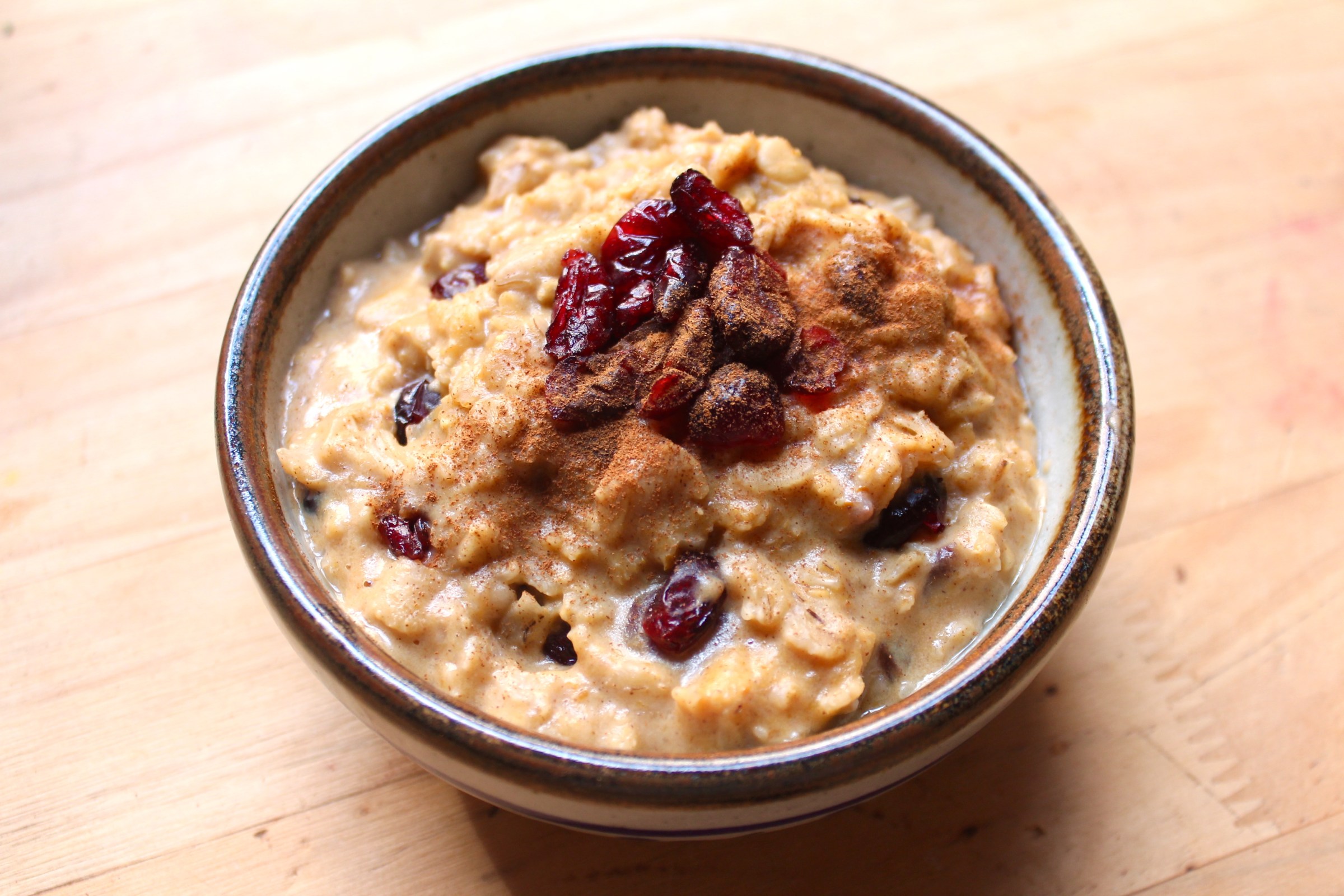 This recipe came to fruition as such: Due to working on some future blog posts, I was baking a pumpkin pie at 11 in the morning. I realized I hadn’t had breakfast. I made some oatmeal. I threw dried cranberries in it. I had leftover pumpkin puree, and I decided to add a giant spoonful …